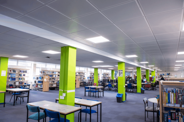 We developed two bespoke solutions for the Library, Innovation Centre and College Tower Block to enhance functionality and aesthetics, ensuring optimal lighting for reading, creative collaboration, general visibility and safety.